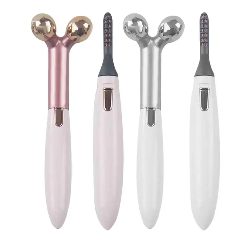 2 In 1 Electric Portable Heated Eyelash Curler 3D Face Slimming Massage Roller Eye Lashes Curling T