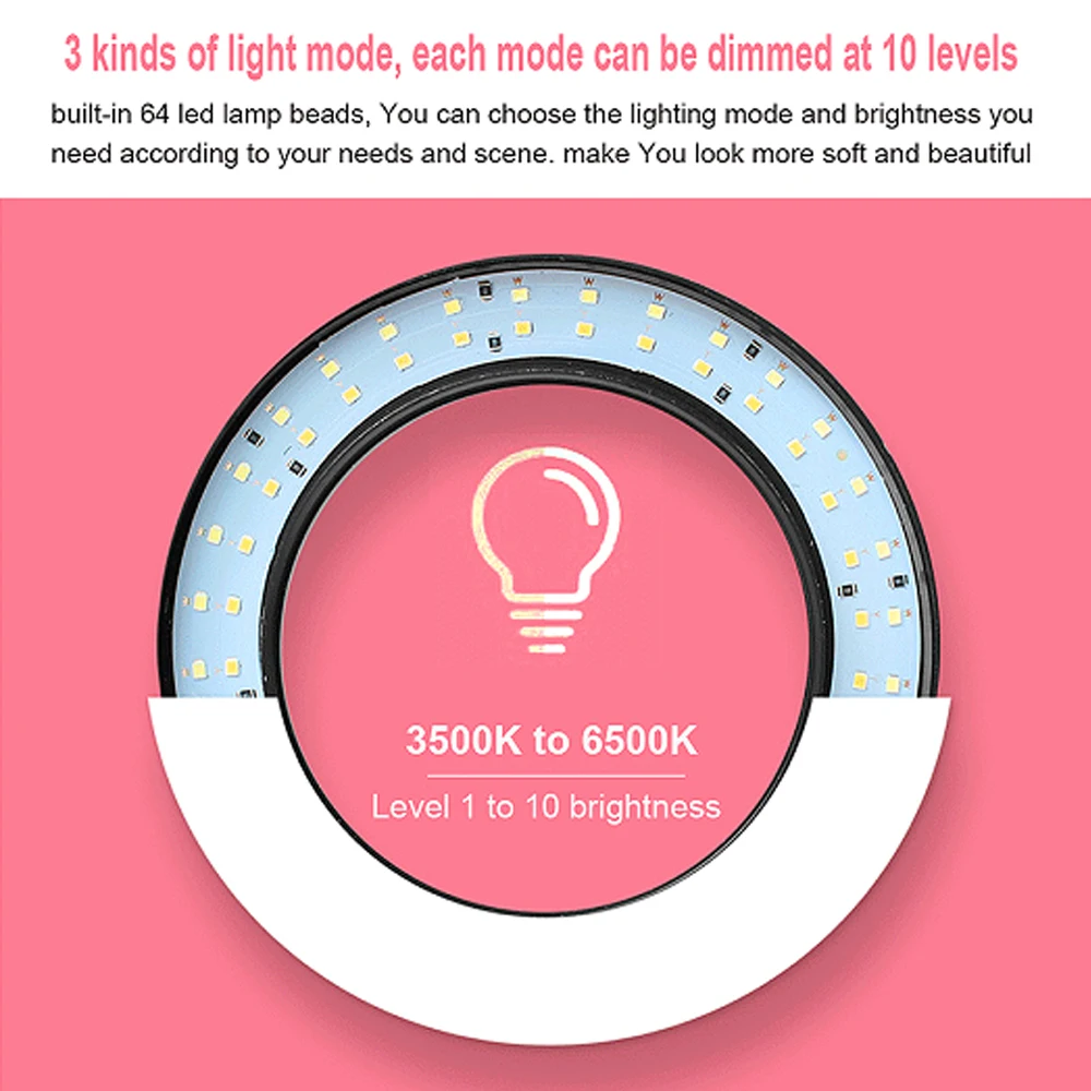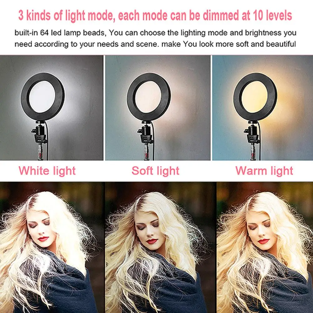 LED Ring Light W/Tripod Photography Photo Sudio Selfie Ring Fill Light Beauty Cold Warm Stepless Th